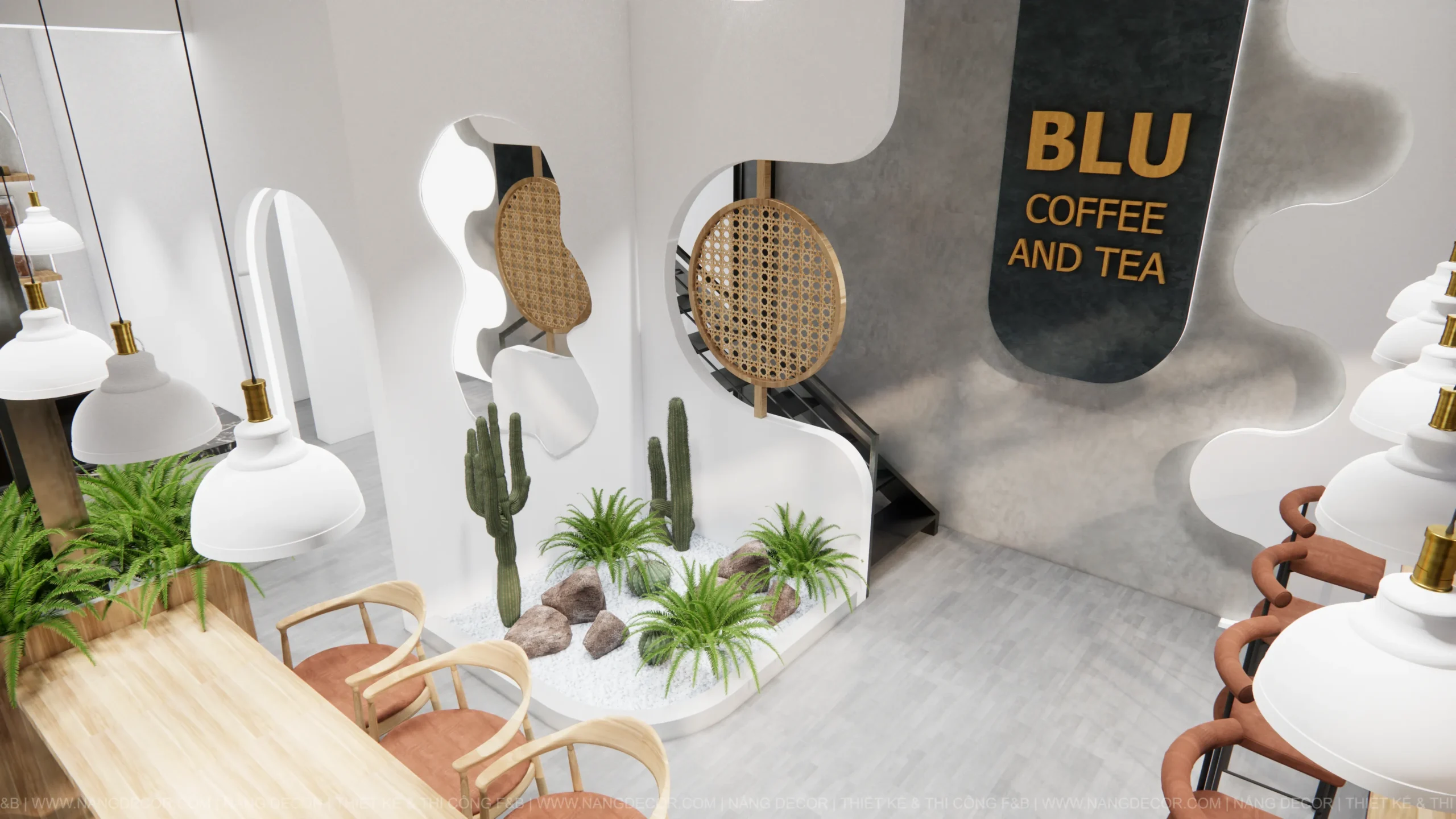 BLU Cafe & Milk Tea là một quán cafe và trà sữa mang đậm phong cách hiện đại, tạo ra không gian lý tưởng cho giới trẻ vừa có thể học tập, làm việc vừa thư giãn. Thiết kế thông minh, sử dụng vật liệu cao cấp và nhiều góc check-in thú vị đã giúp quán trở thành điểm đến ưa thích của khách hàng. Nếu bạn đang tìm kiếm một đơn vị thiết kế và thi công trọn gói cho không gian F&B của mình, hãy liên hệ ngay với Nắng Decor để được tư vấn và triển khai dự án một cách chuyên nghiệp nhất.