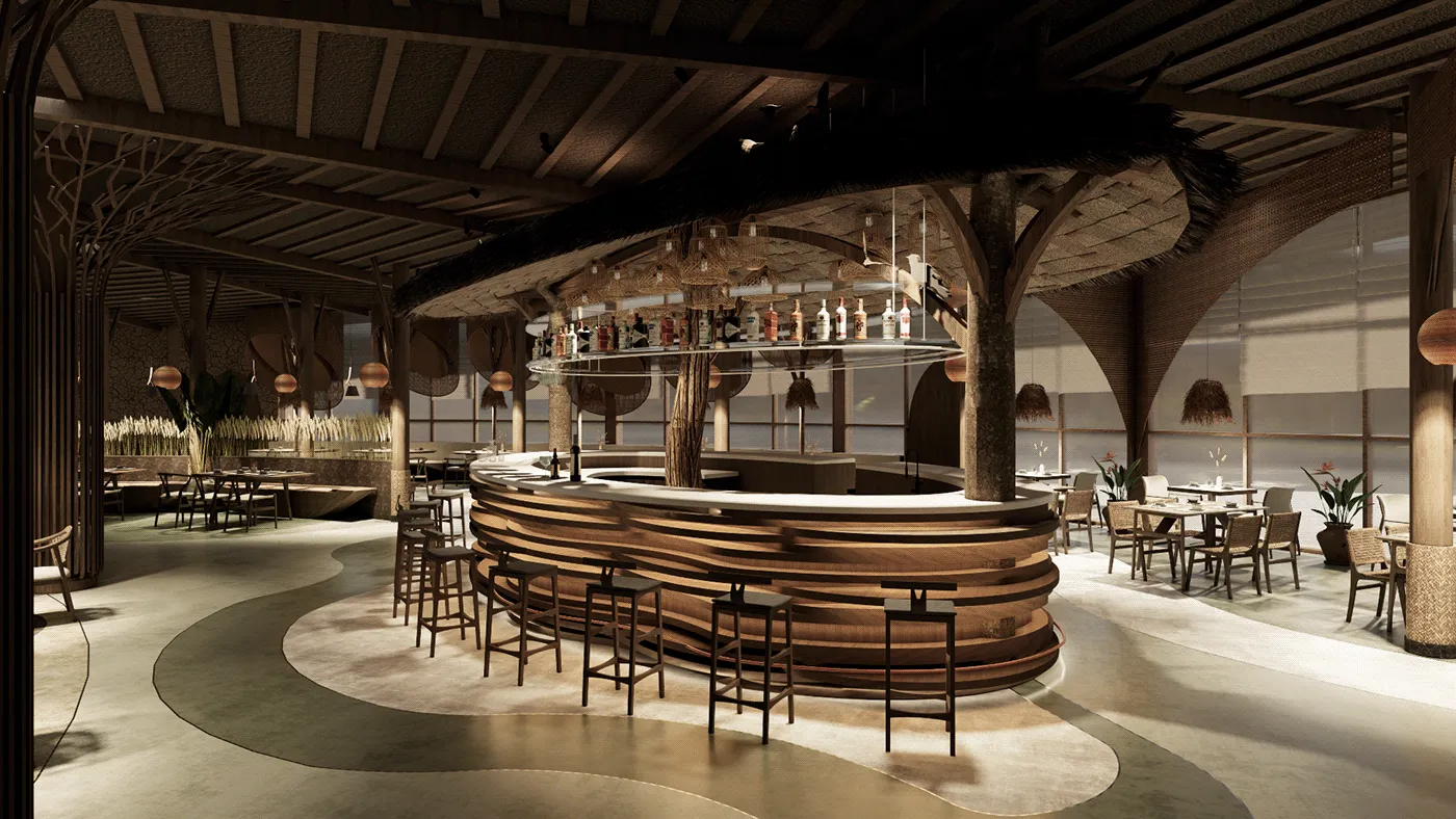 Nhà hàng Đất Phương Nam là sự kết hợp giữa nét đẹp truyền thống của văn hóa Việt và phong cách hiện đại. Những đường nét mộc mạc, tự nhiên của gỗ và tre, kết hợp với thiết kế không gian mở, tạo nên cảm giác thông thoáng và dễ chịu. Phong cách này không chỉ tôn vinh nét đẹp văn hóa vùng miền mà còn mang đến trải nghiệm sang trọng, tiện nghi cho khách hàng.